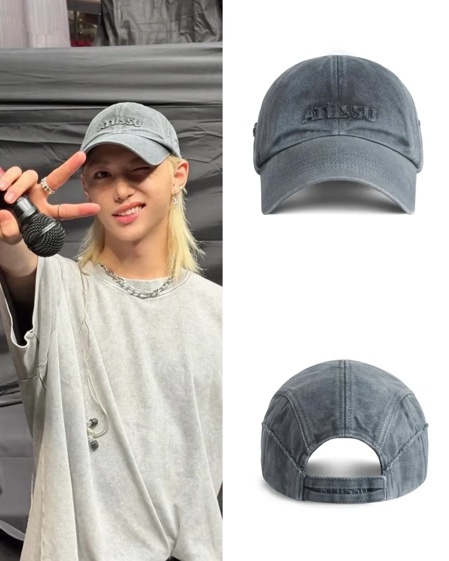 🇰🇷韓國代購ATiiSSU洗舊感品牌LOGO貼花立體刺繡老帽/棒球帽 灰色(李龍馥同款)