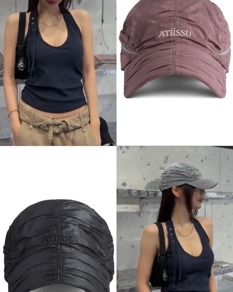 🇰🇷韓國代購ATiiSSU 皺褶感設計拼接網面刺繡LOGO老帽/棒球帽