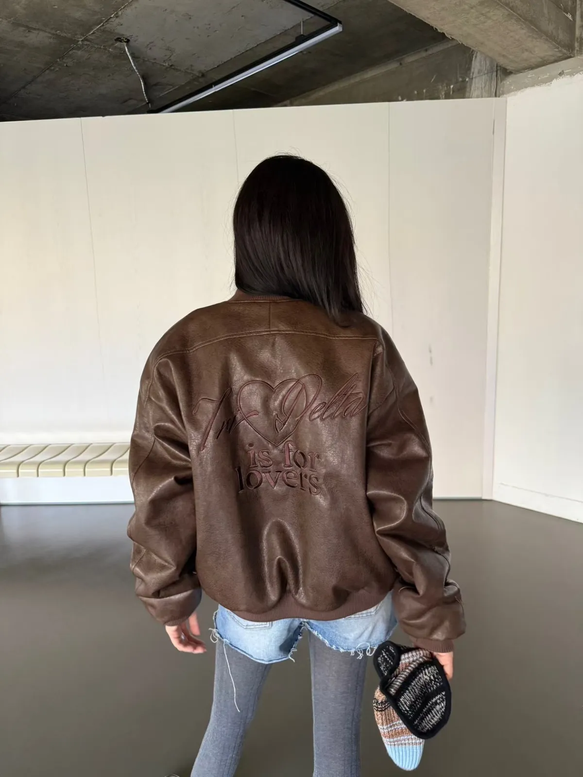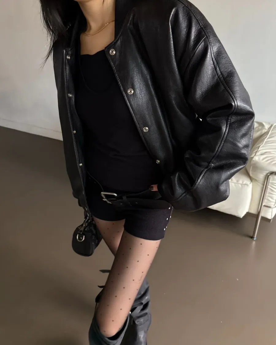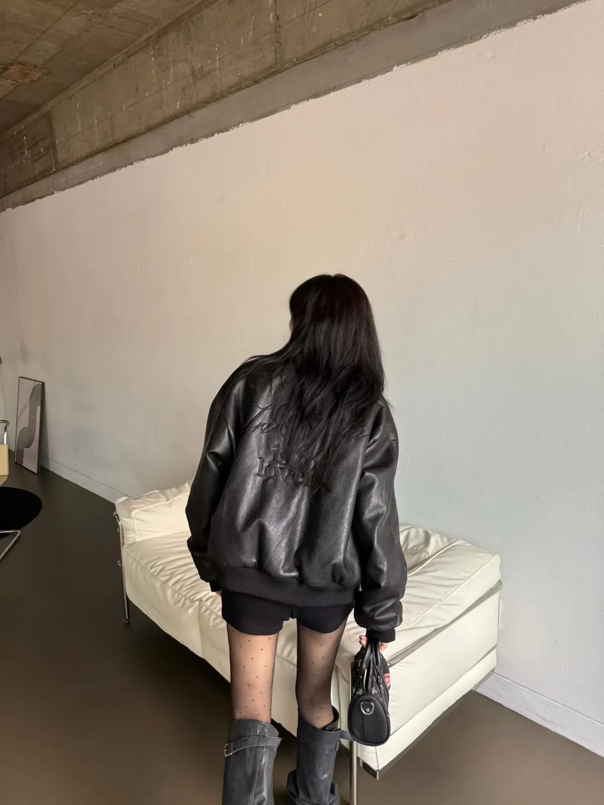 後刺繡字母羊羔毛內裡皮革棒球外套 2色