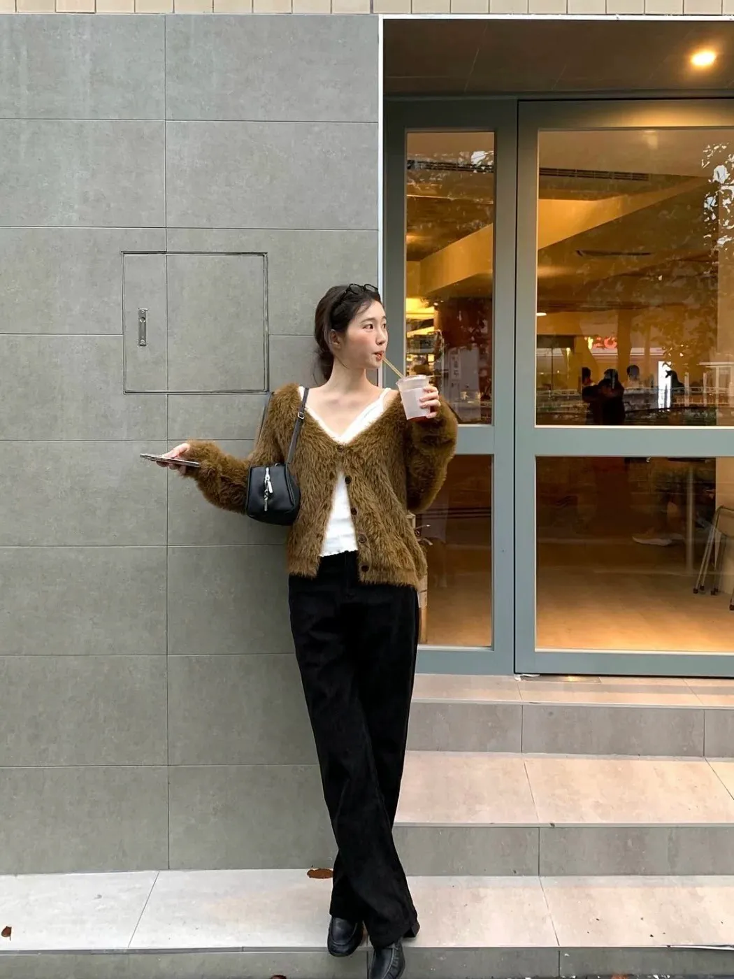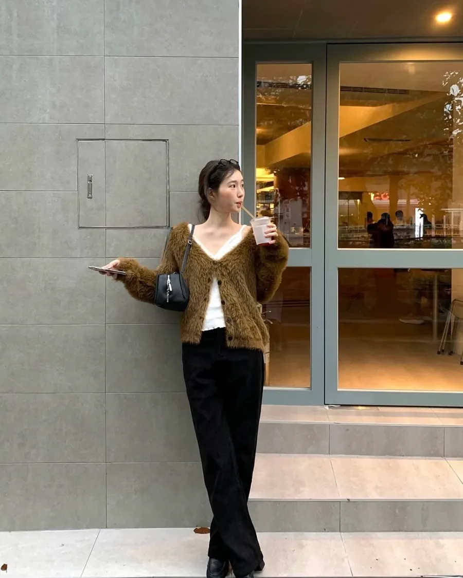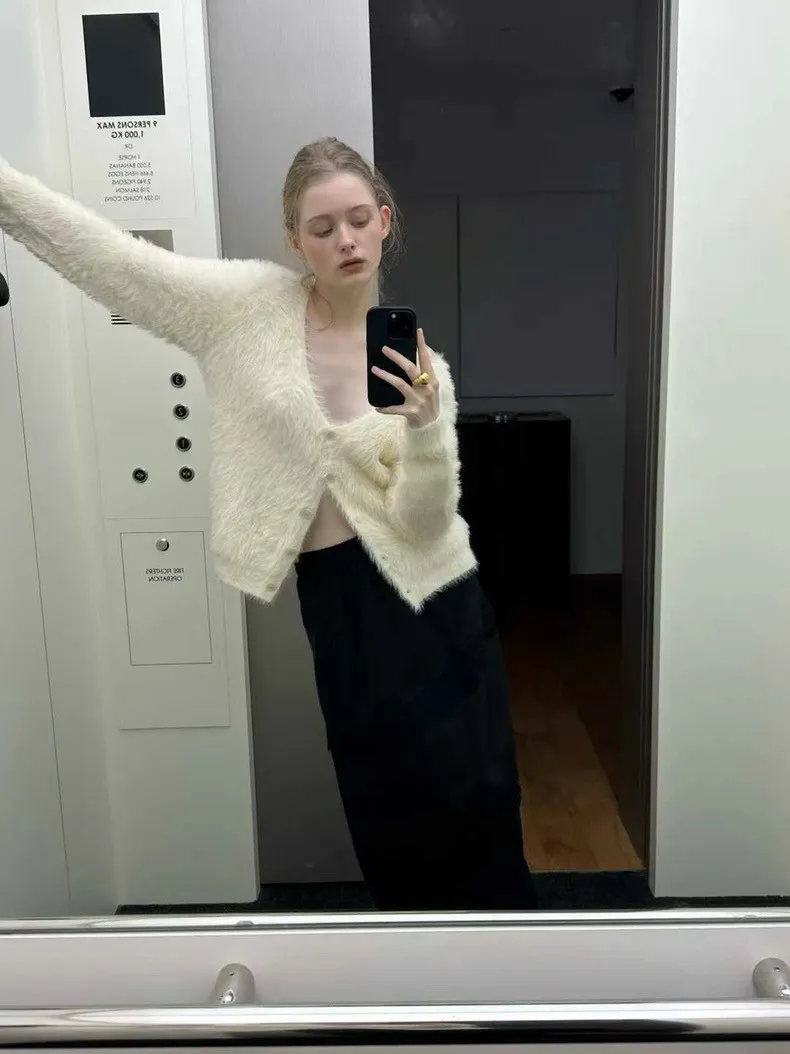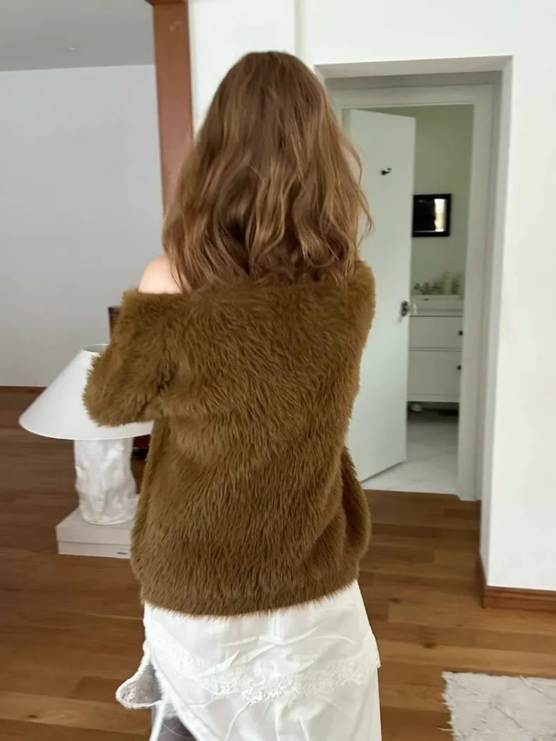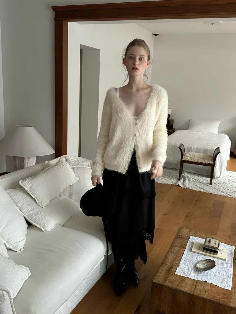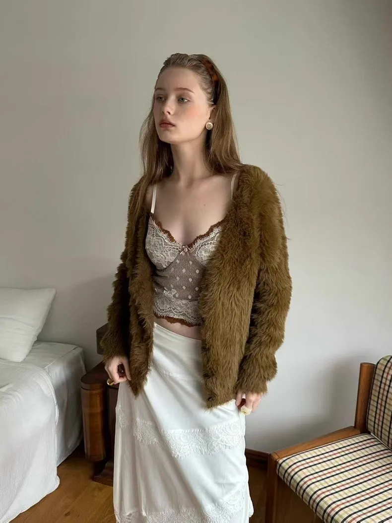 仿水貂毛V領針織開衫 2色