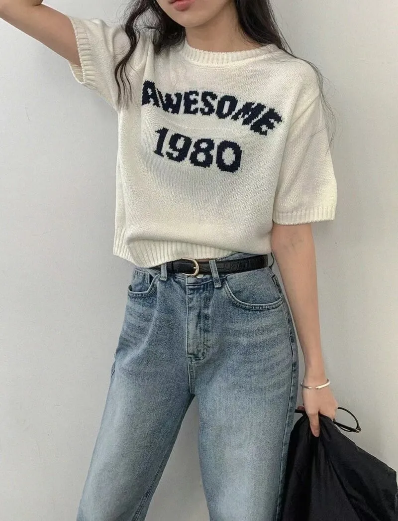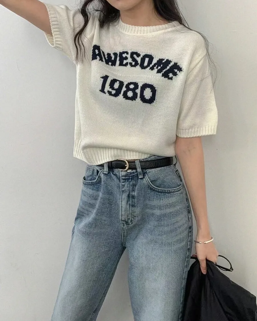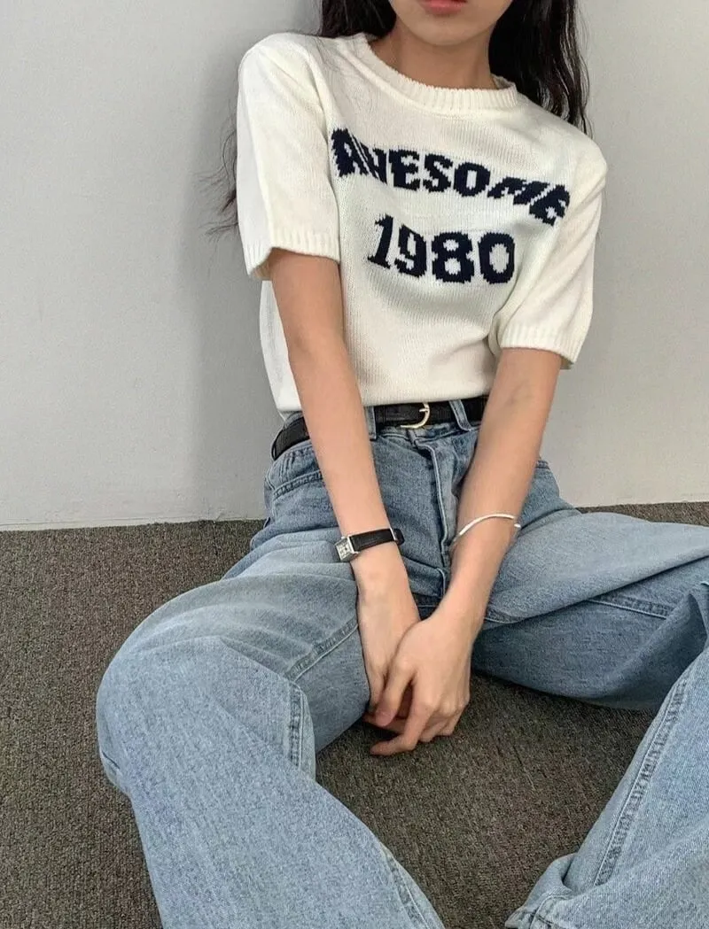 1980字母短袖針織衫