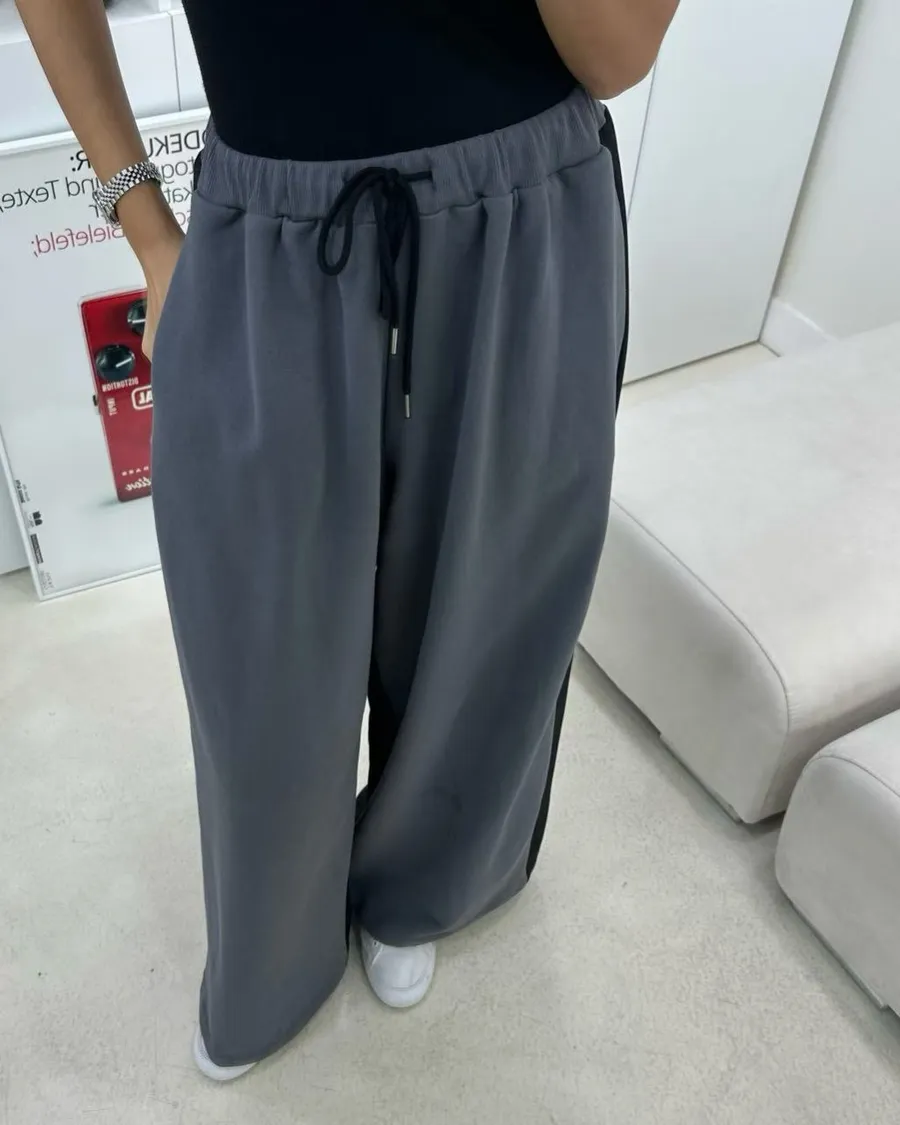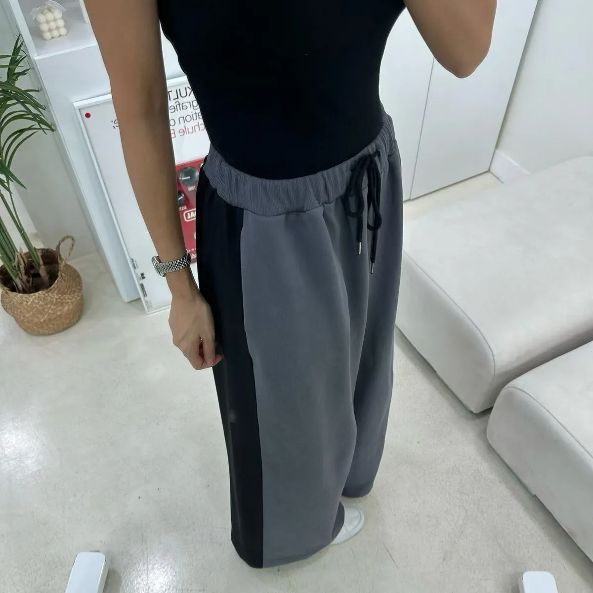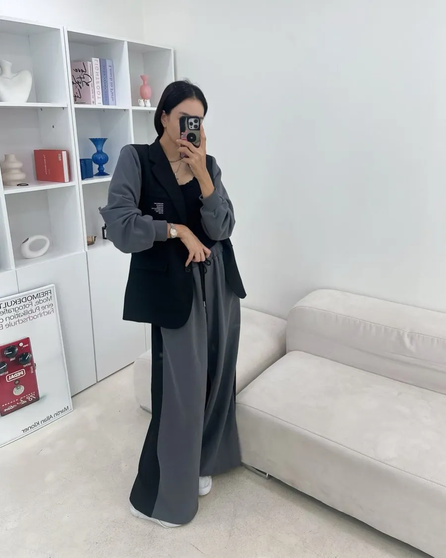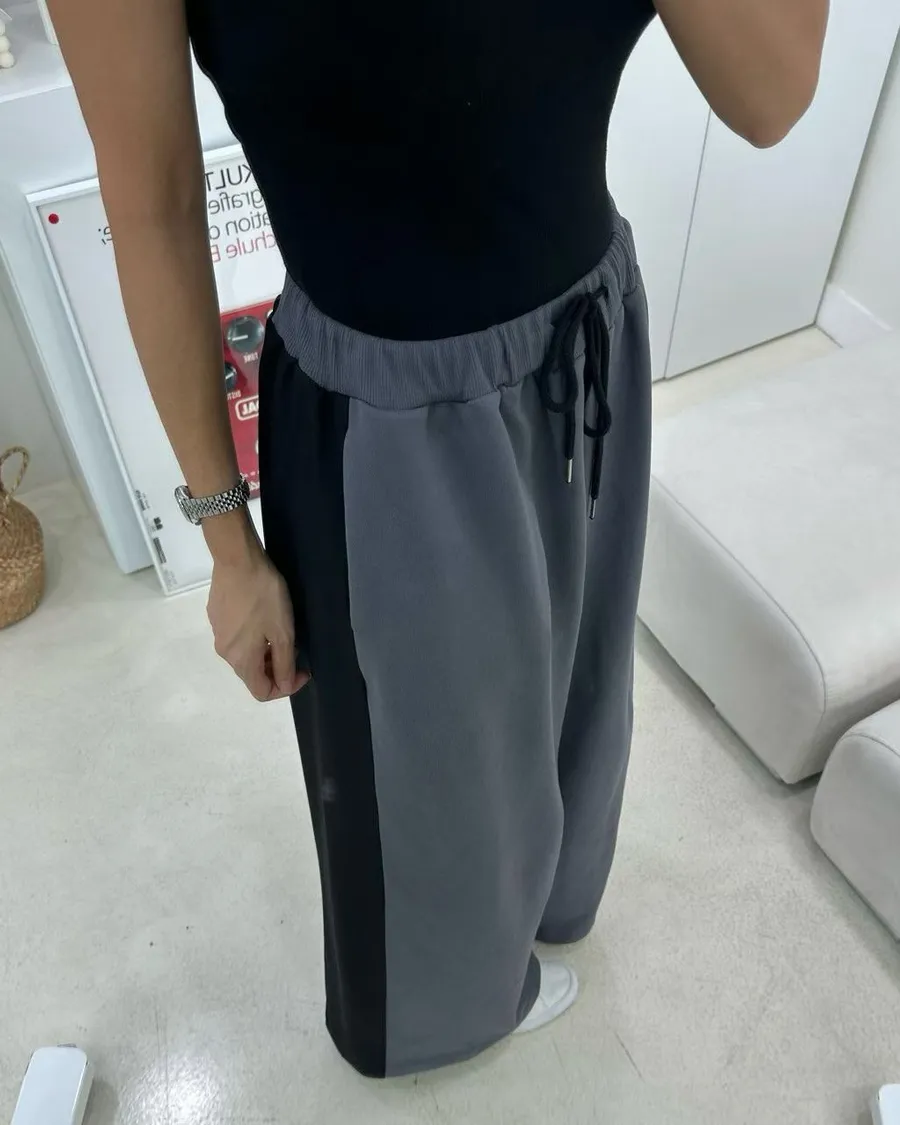 設計師檔口品牌 異材質拼接休閒寬褲