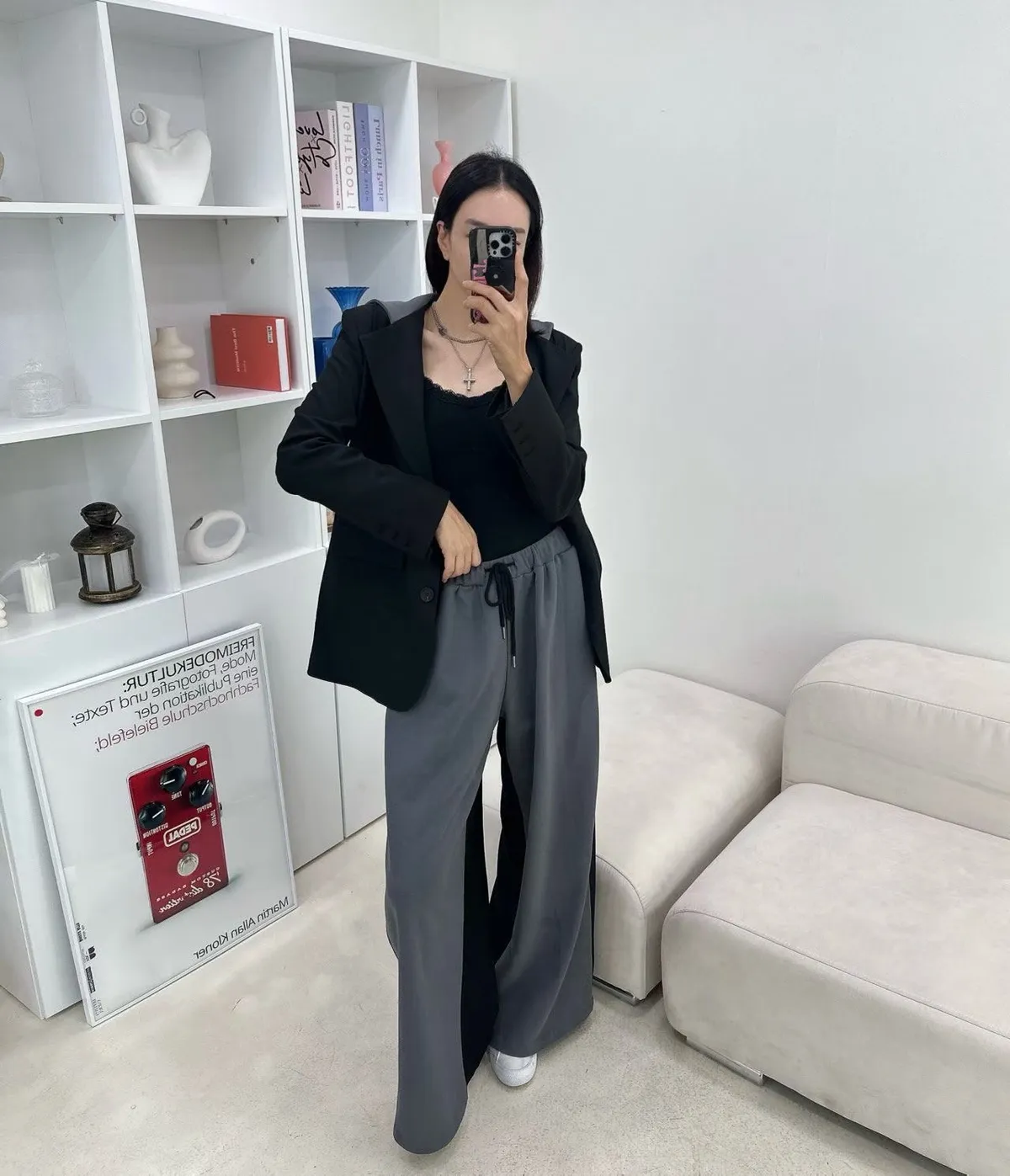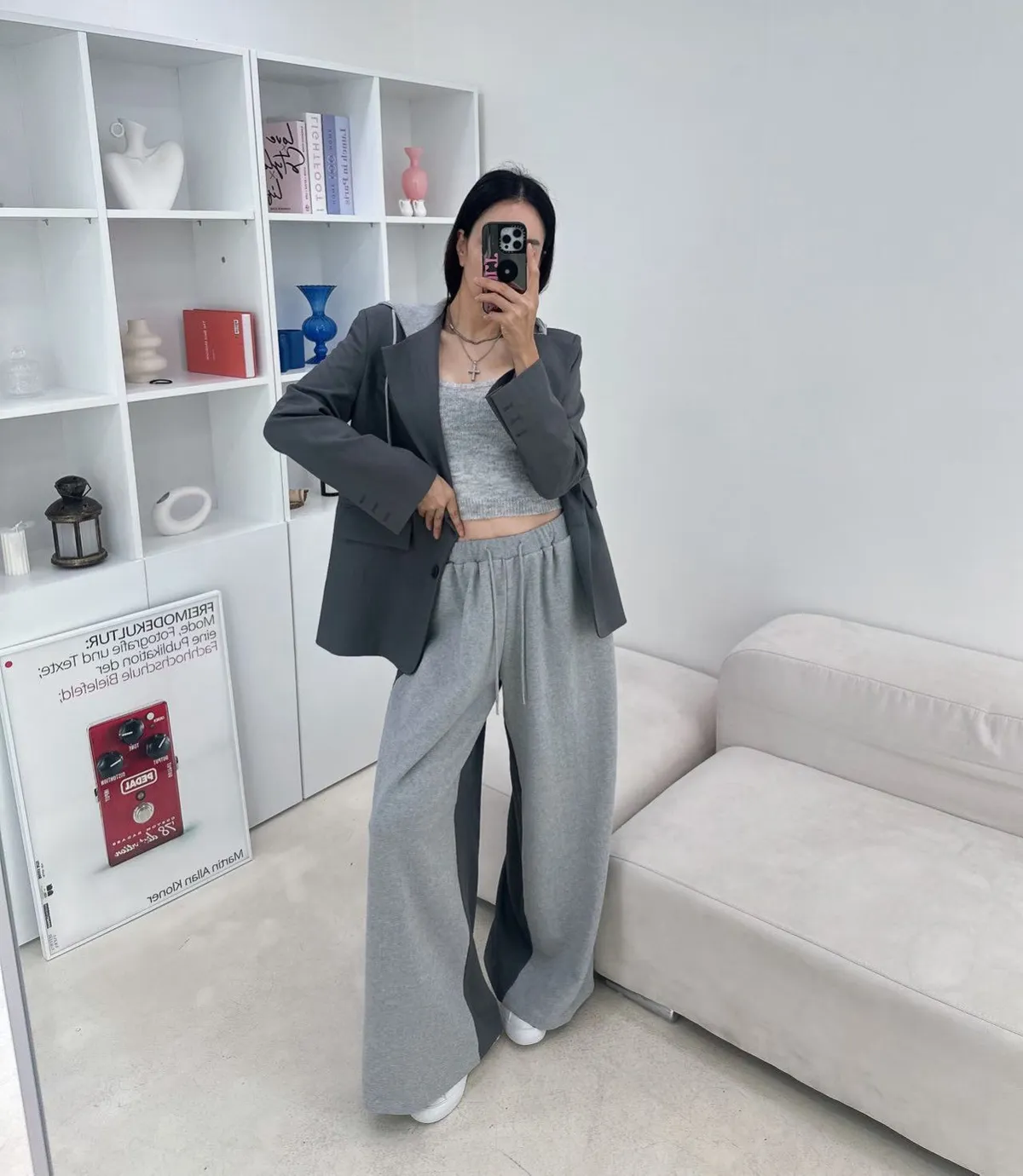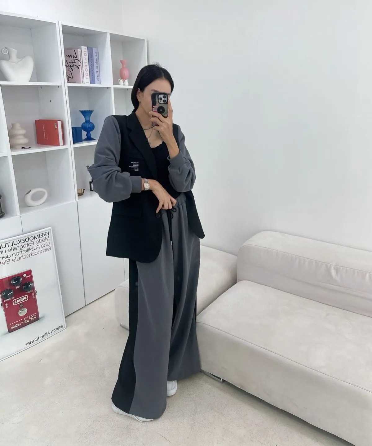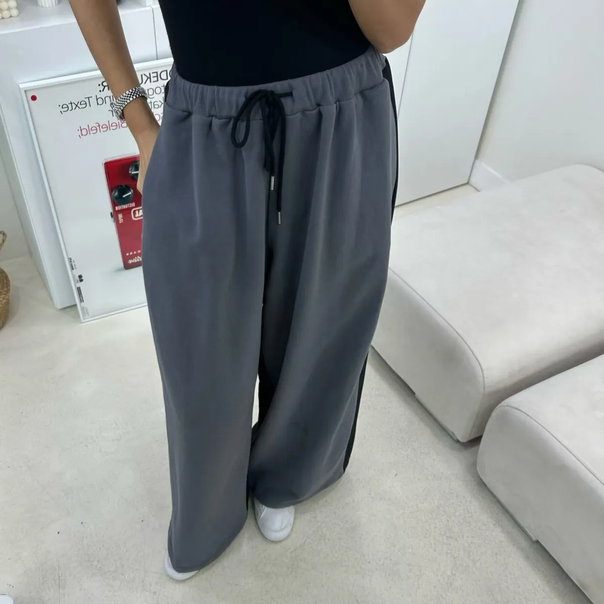 設計師檔口品牌 異材質拼接休閒寬褲