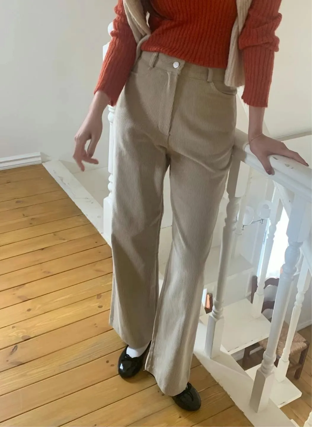 ONNI穿搭燈芯絨高腰直筒長褲 3色 S/M