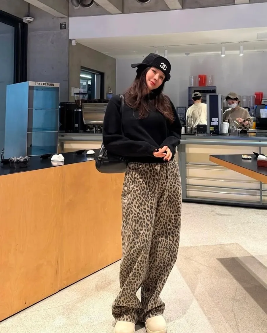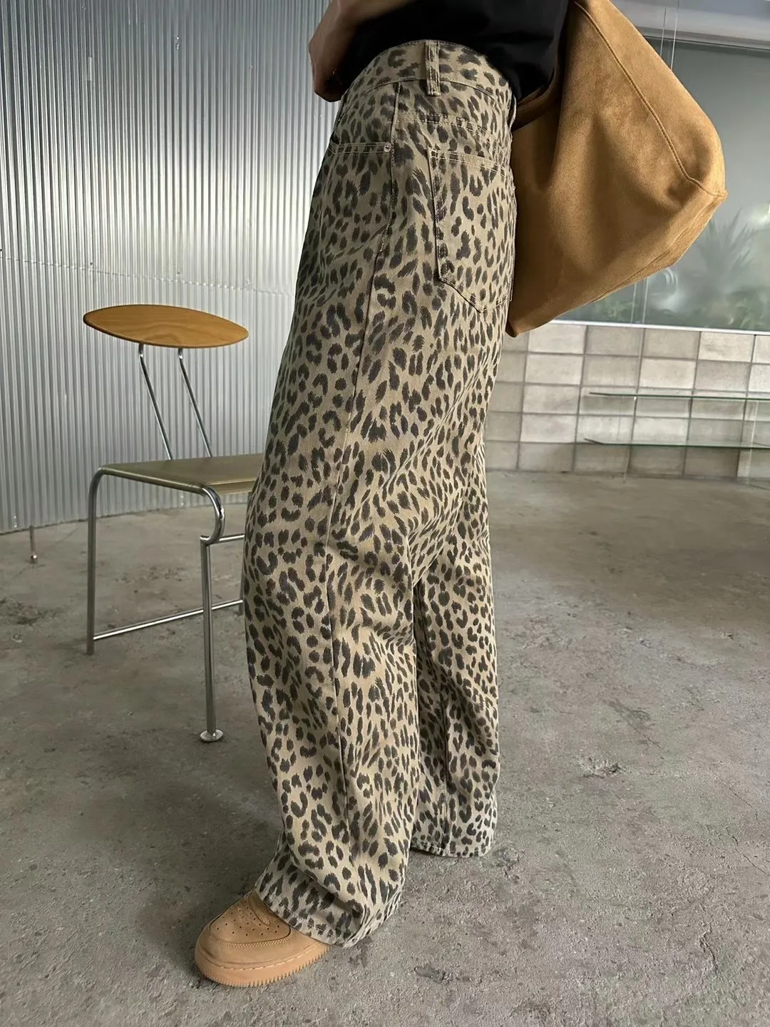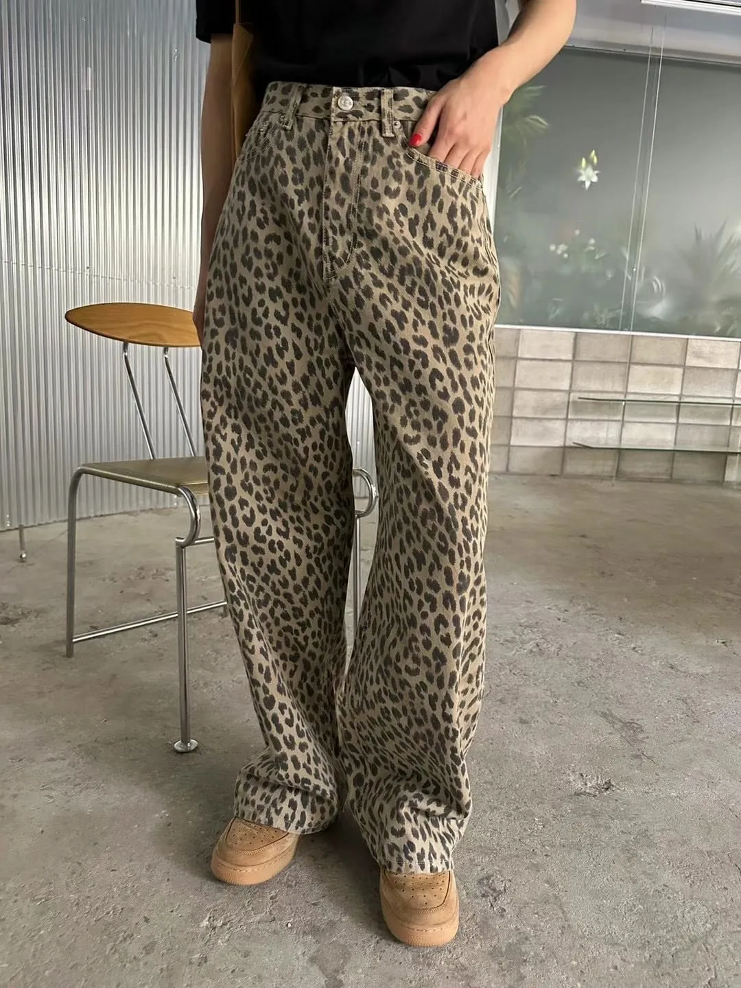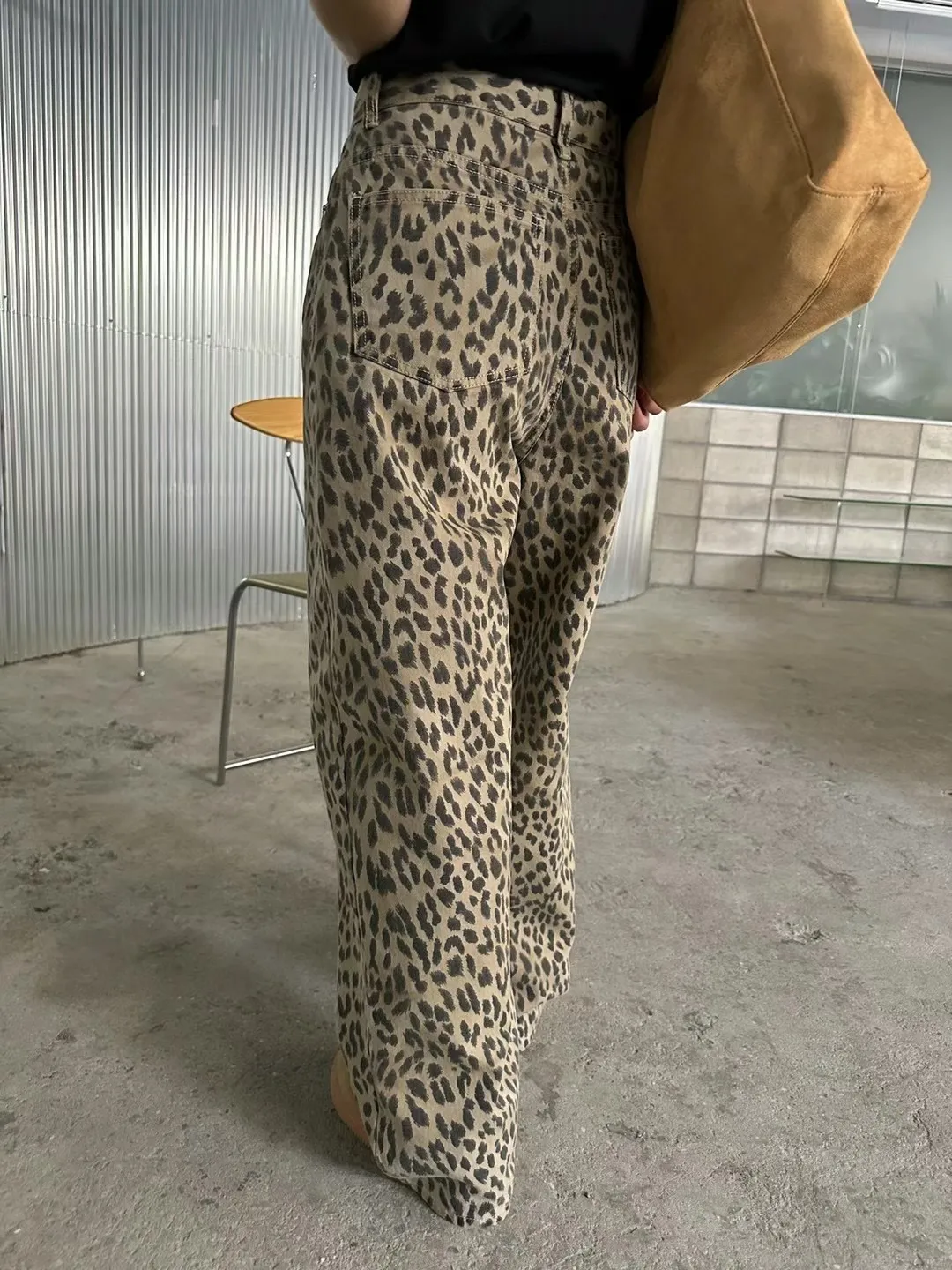 時髦精必備復古豹紋直筒牛仔褲 S/M