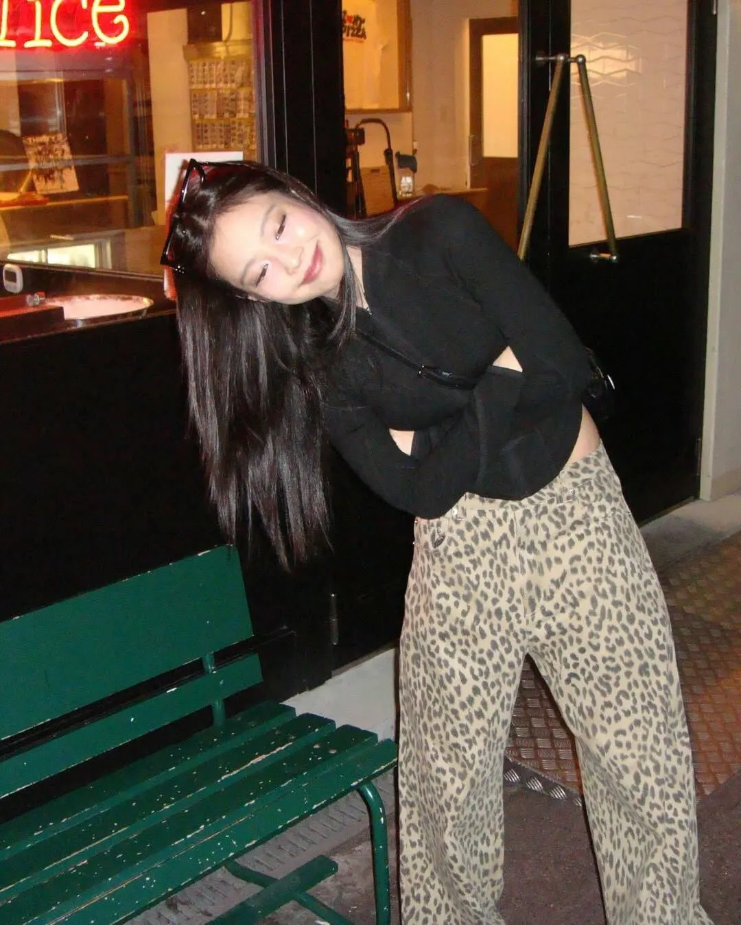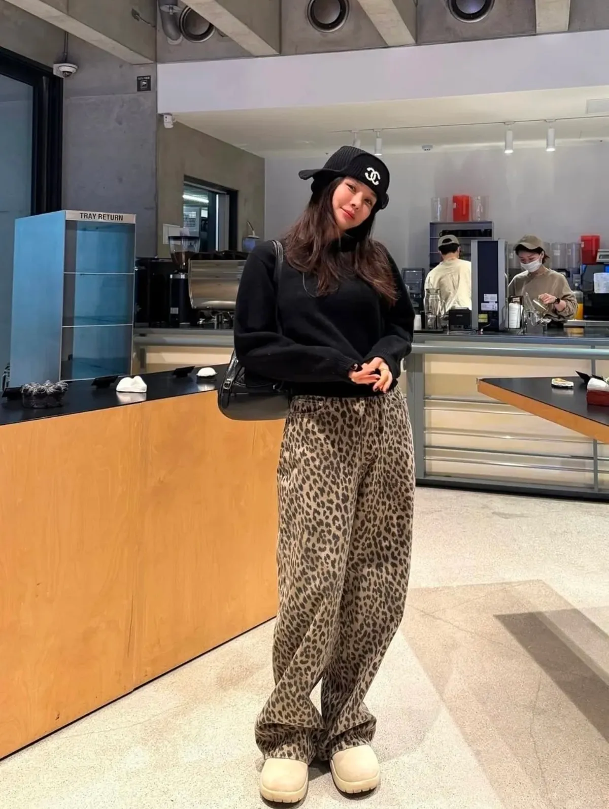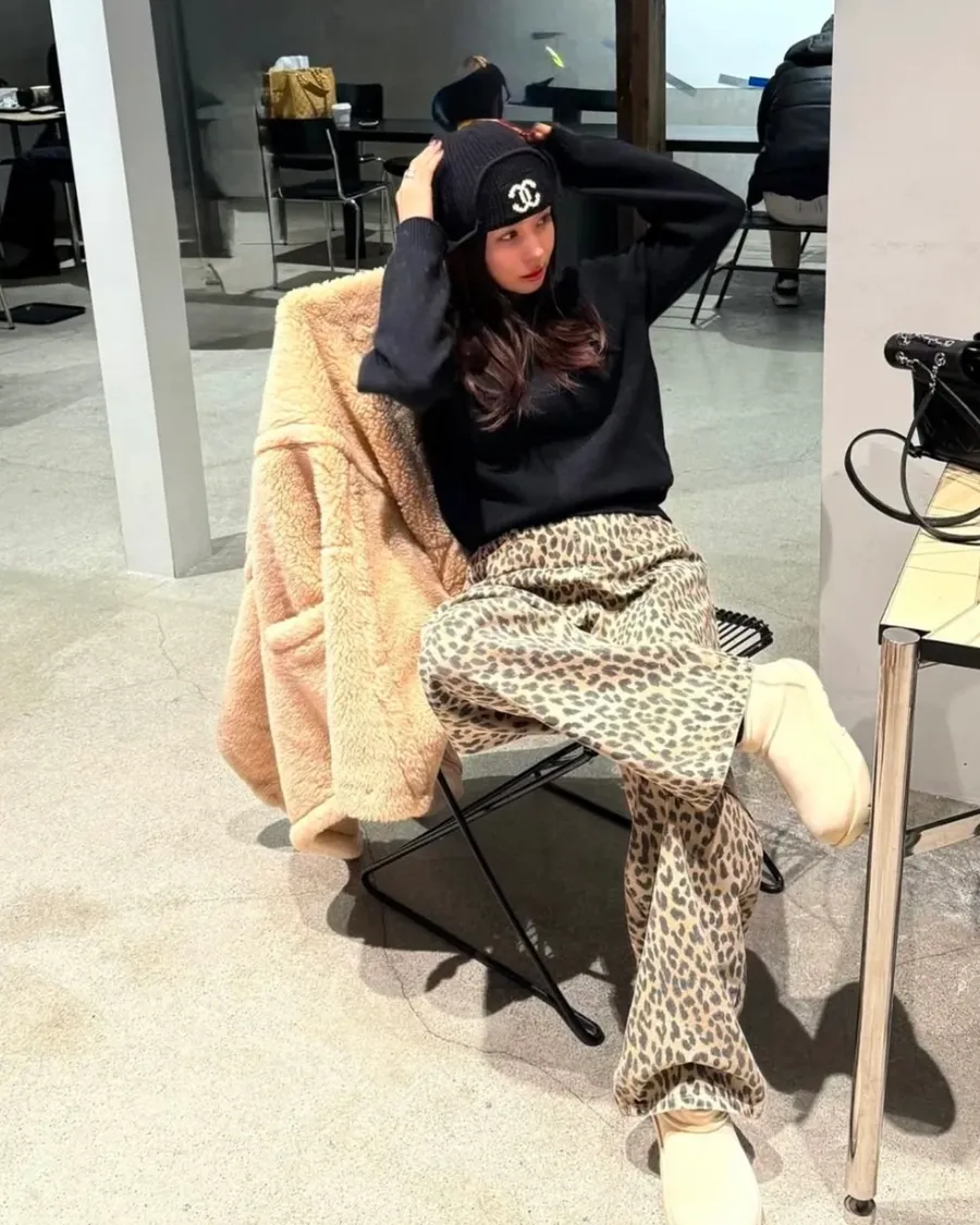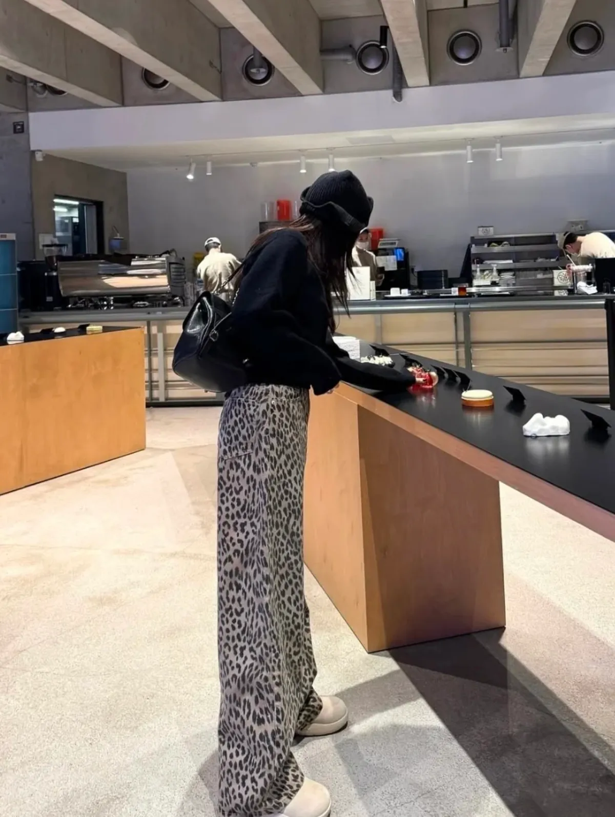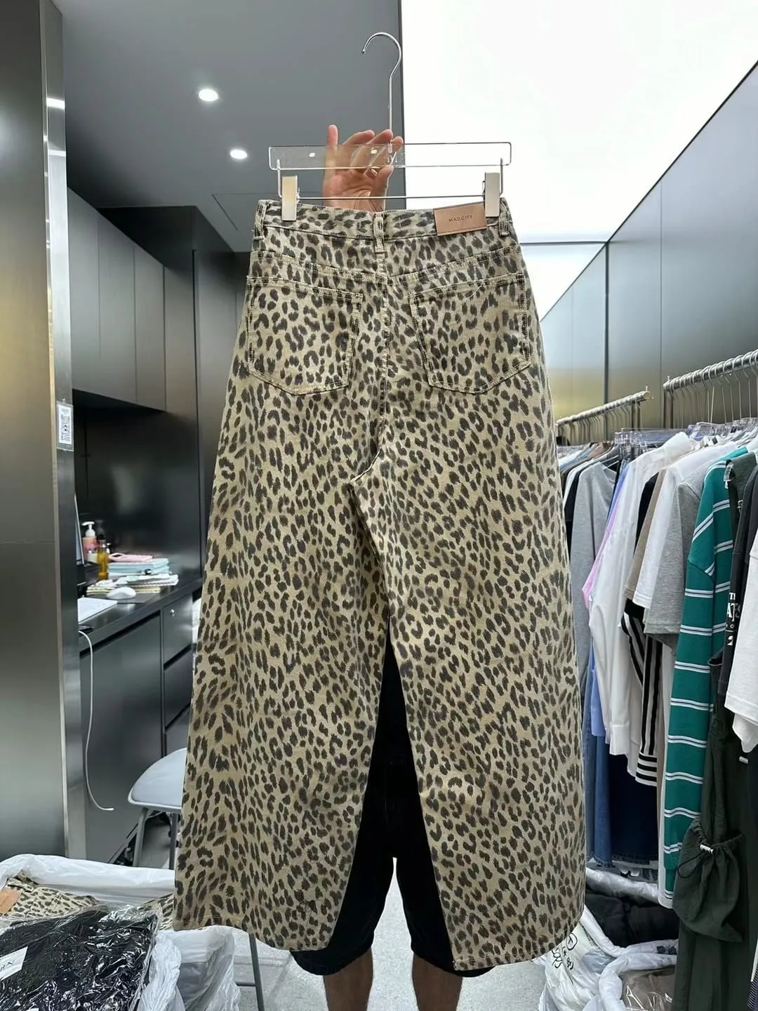 時髦精必備復古豹紋直筒牛仔褲 S/M