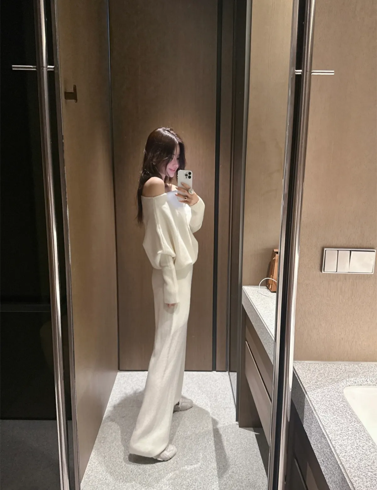 軟糯糯舒適露肩針織套裝組 4色