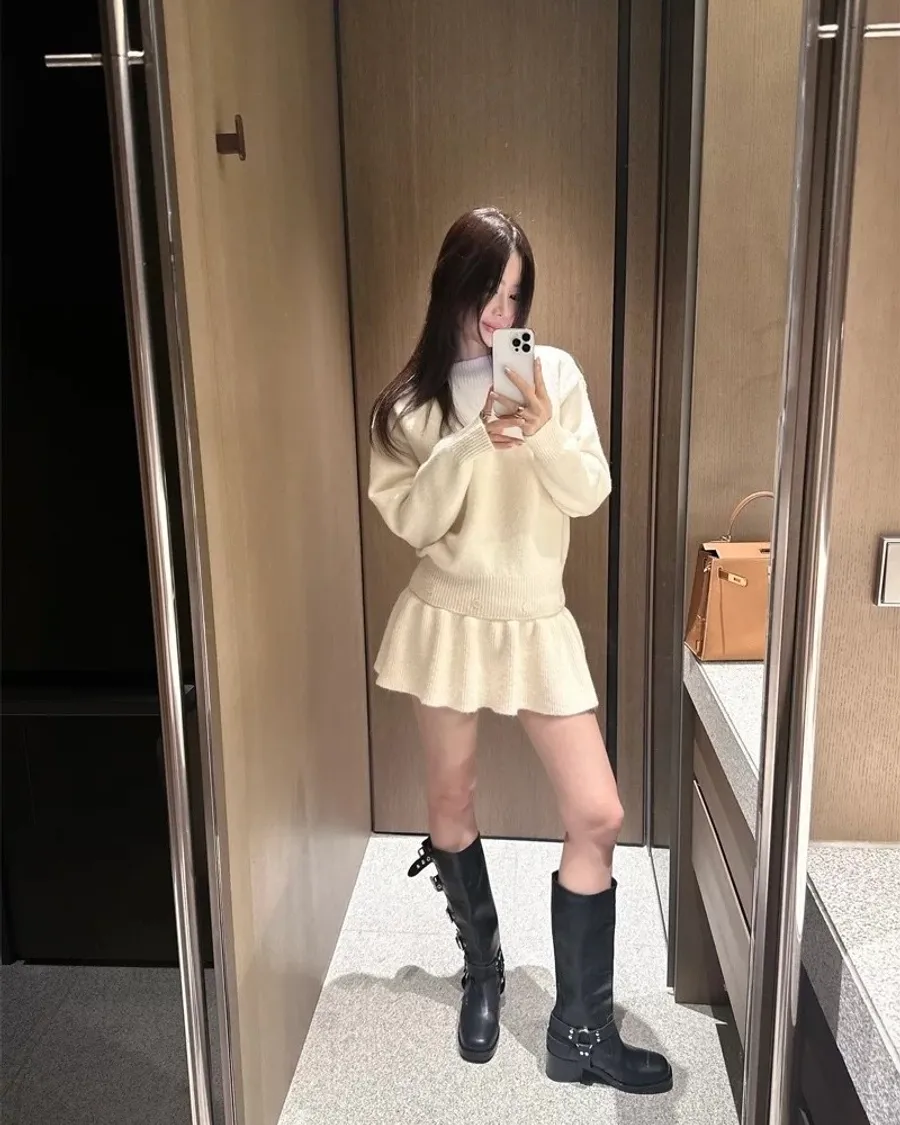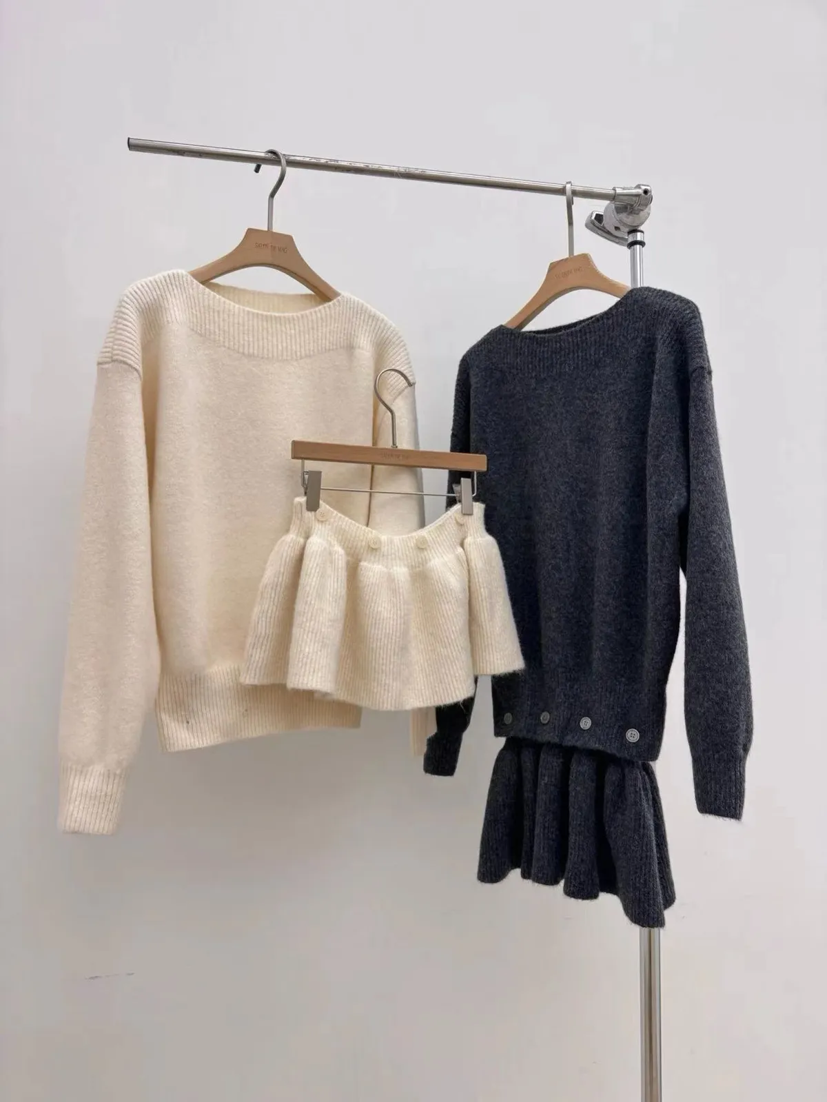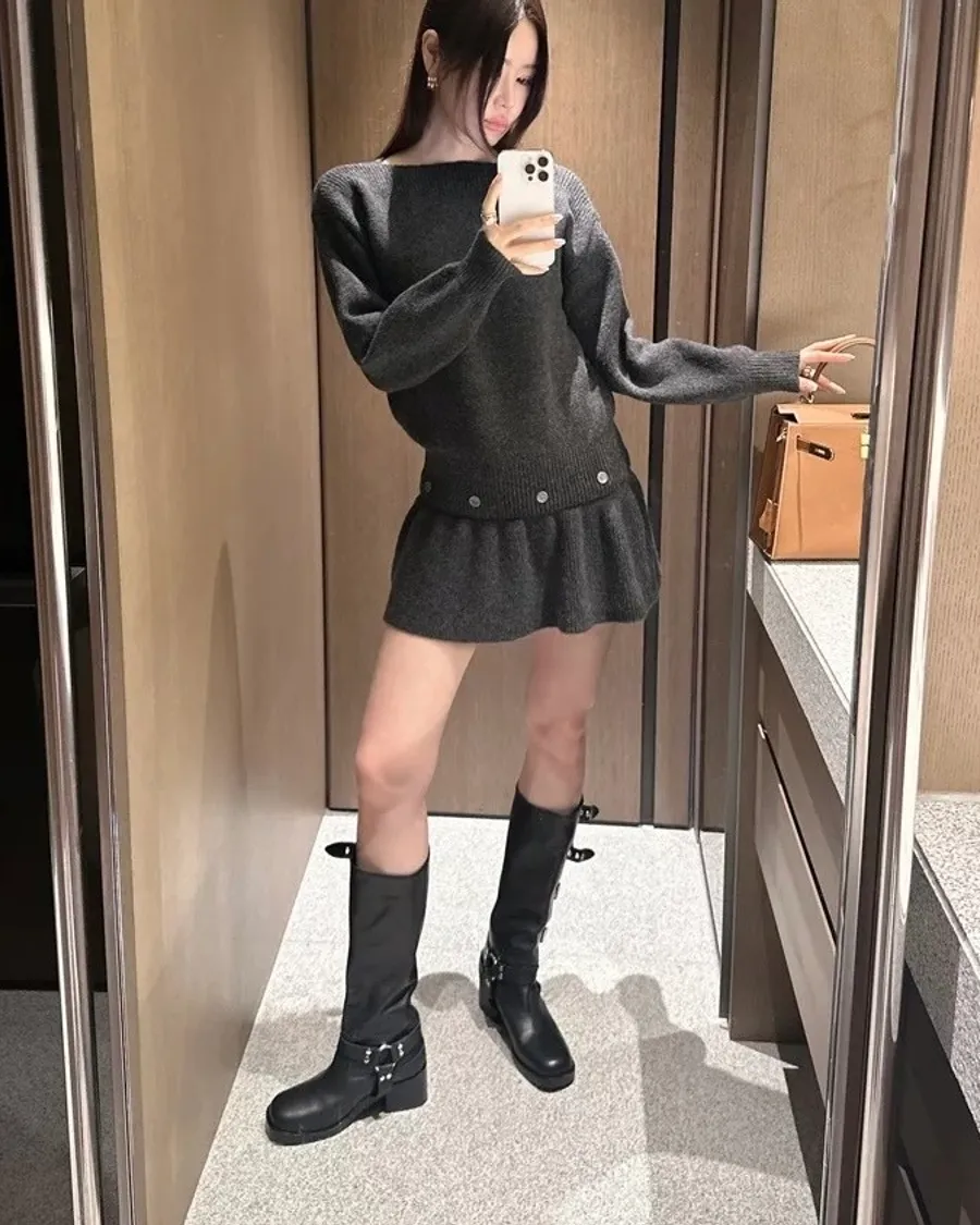 羊毛6% 兩件式可拆鈕扣羊毛針織裙 2色