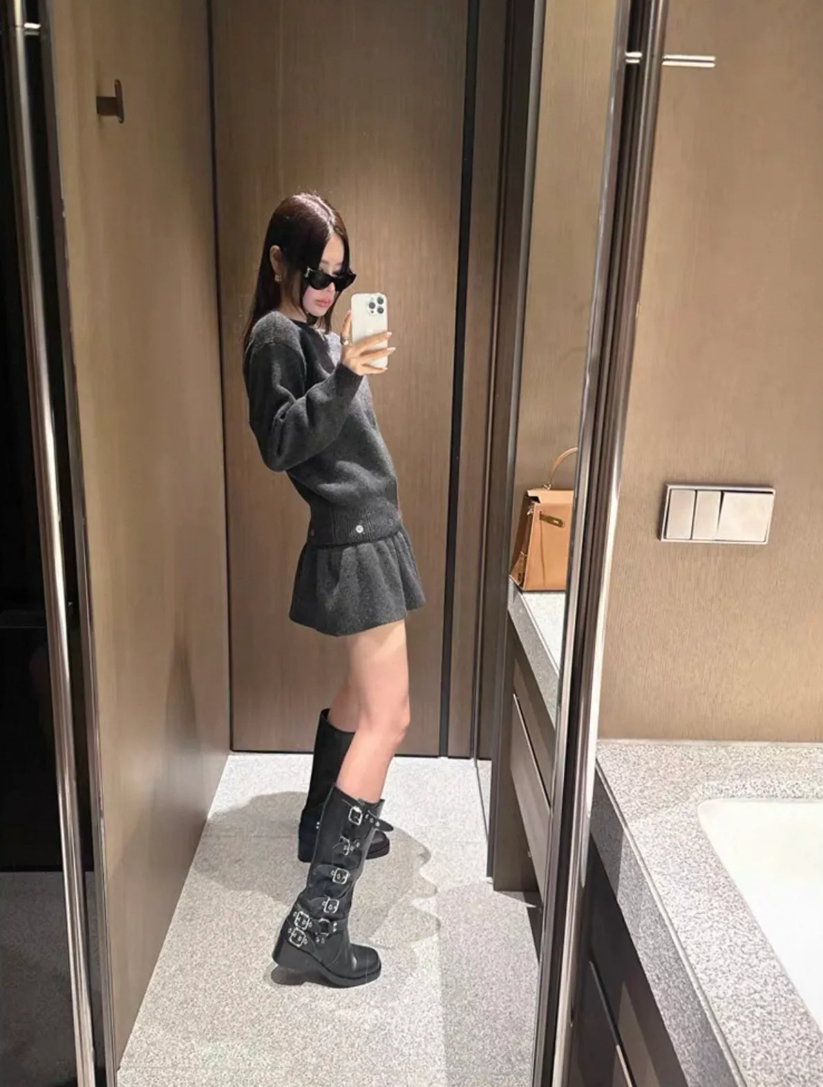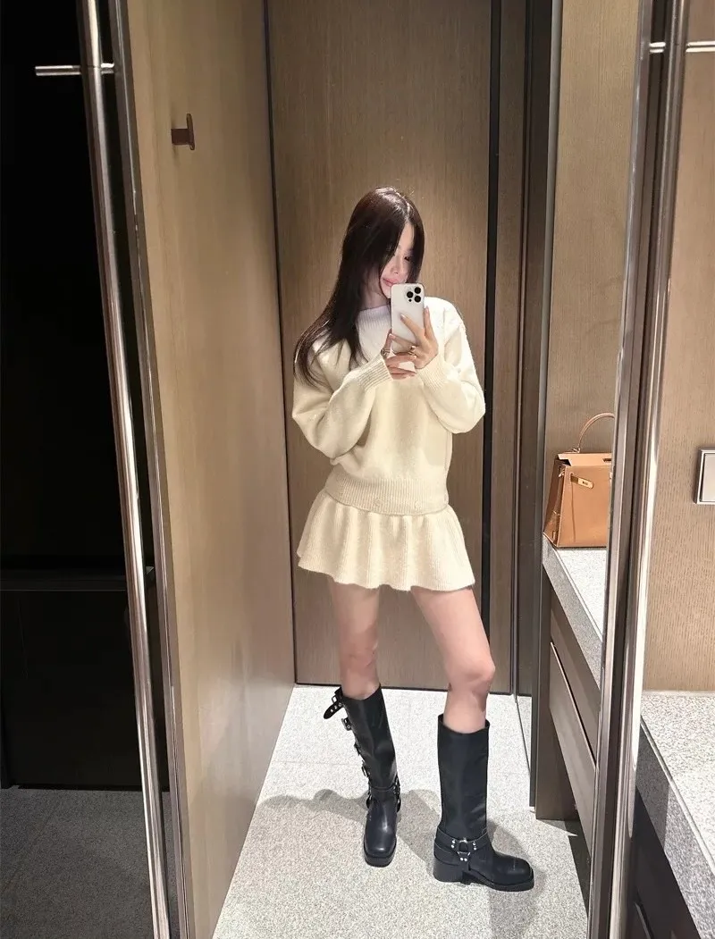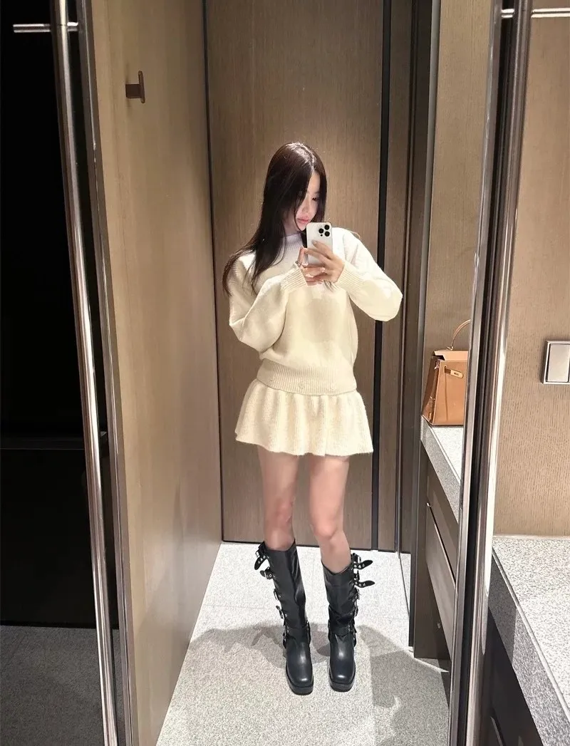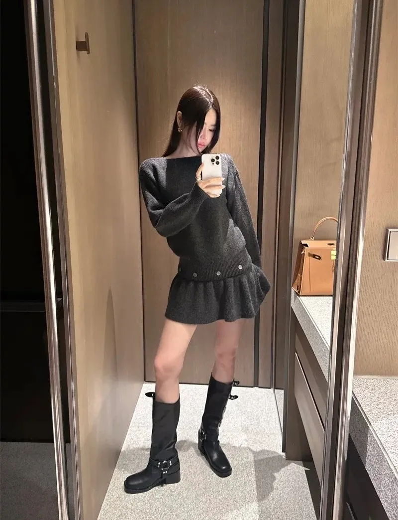 羊毛6% 兩件式可拆鈕扣羊毛針織裙 2色