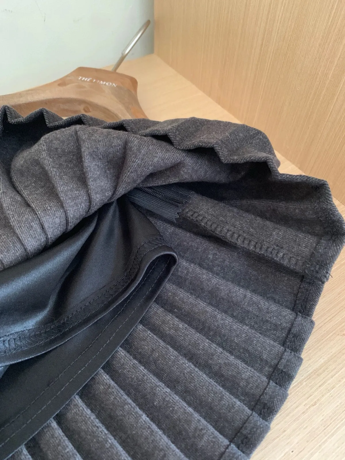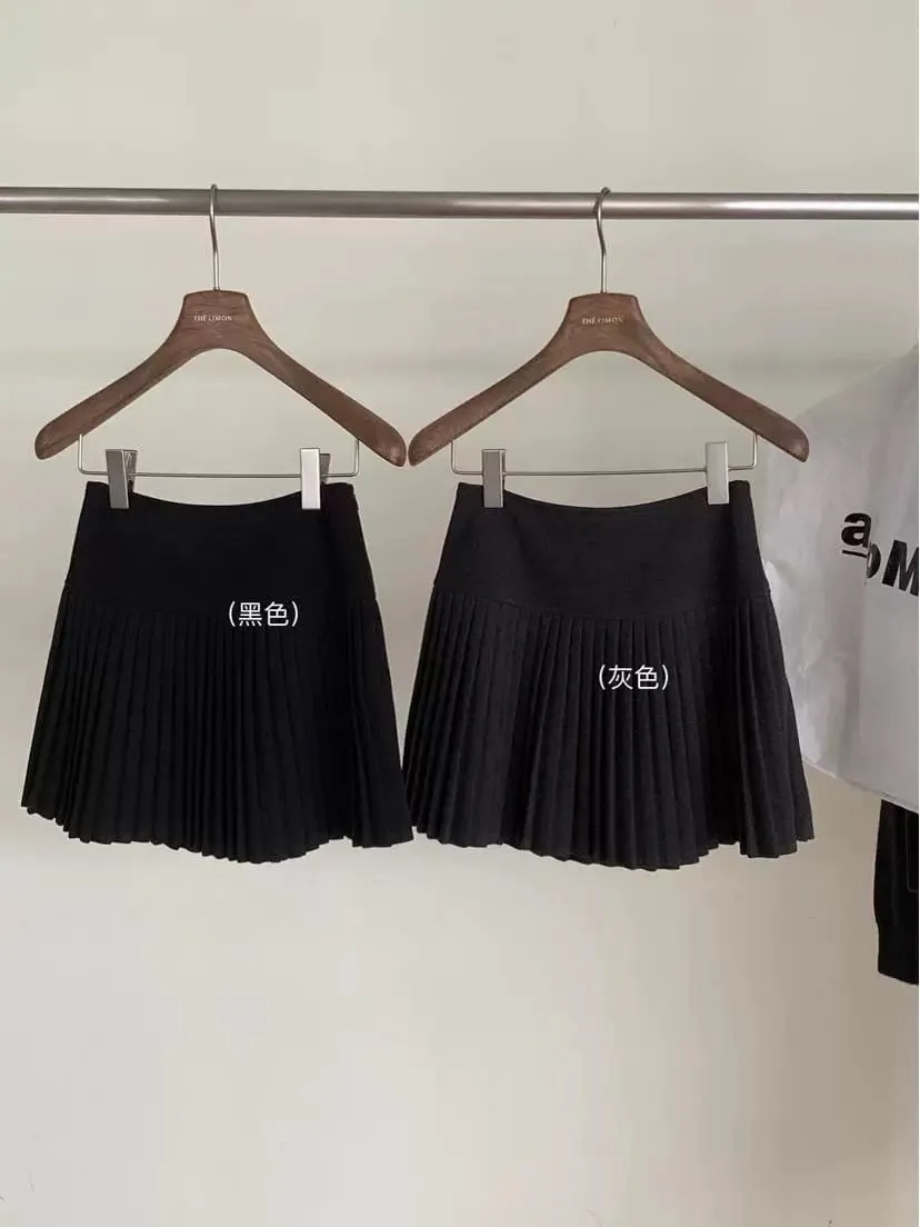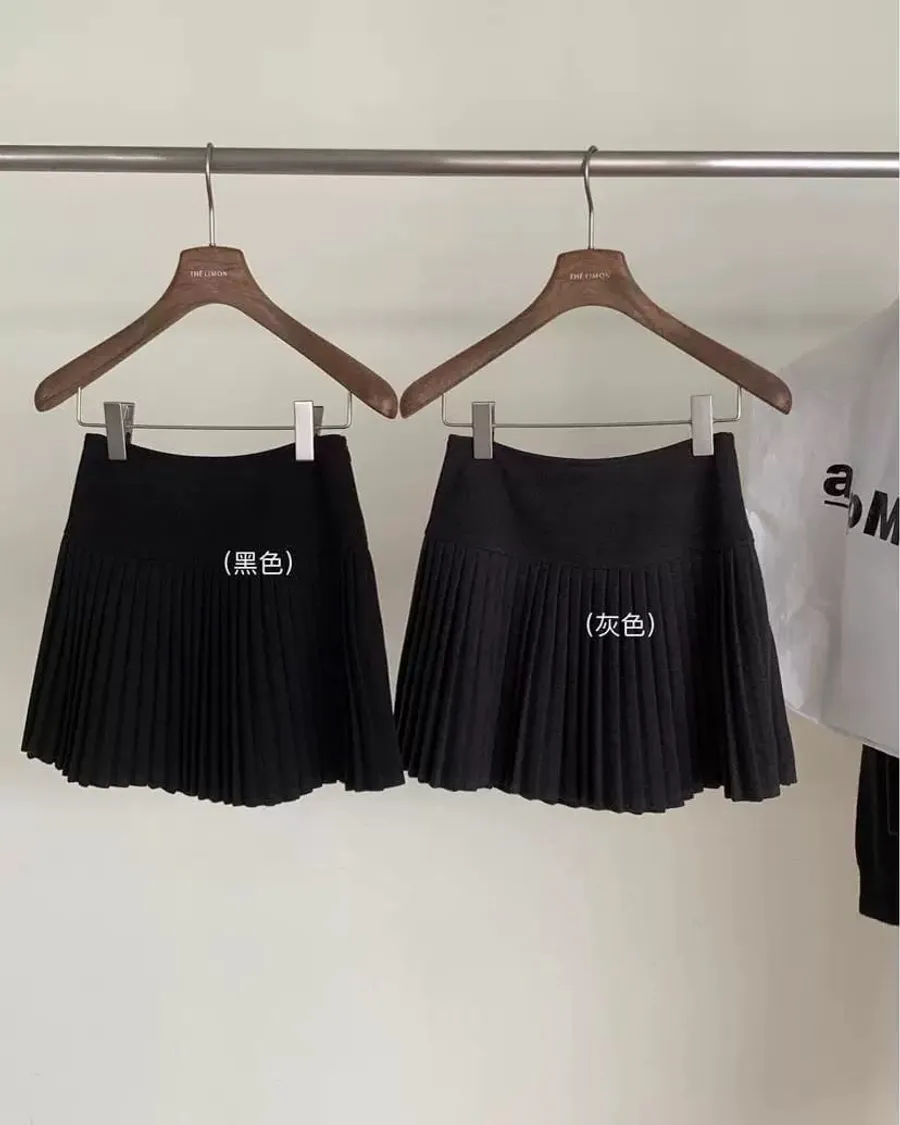 高腰顯瘦毛呢百摺褲裙 2色 SML