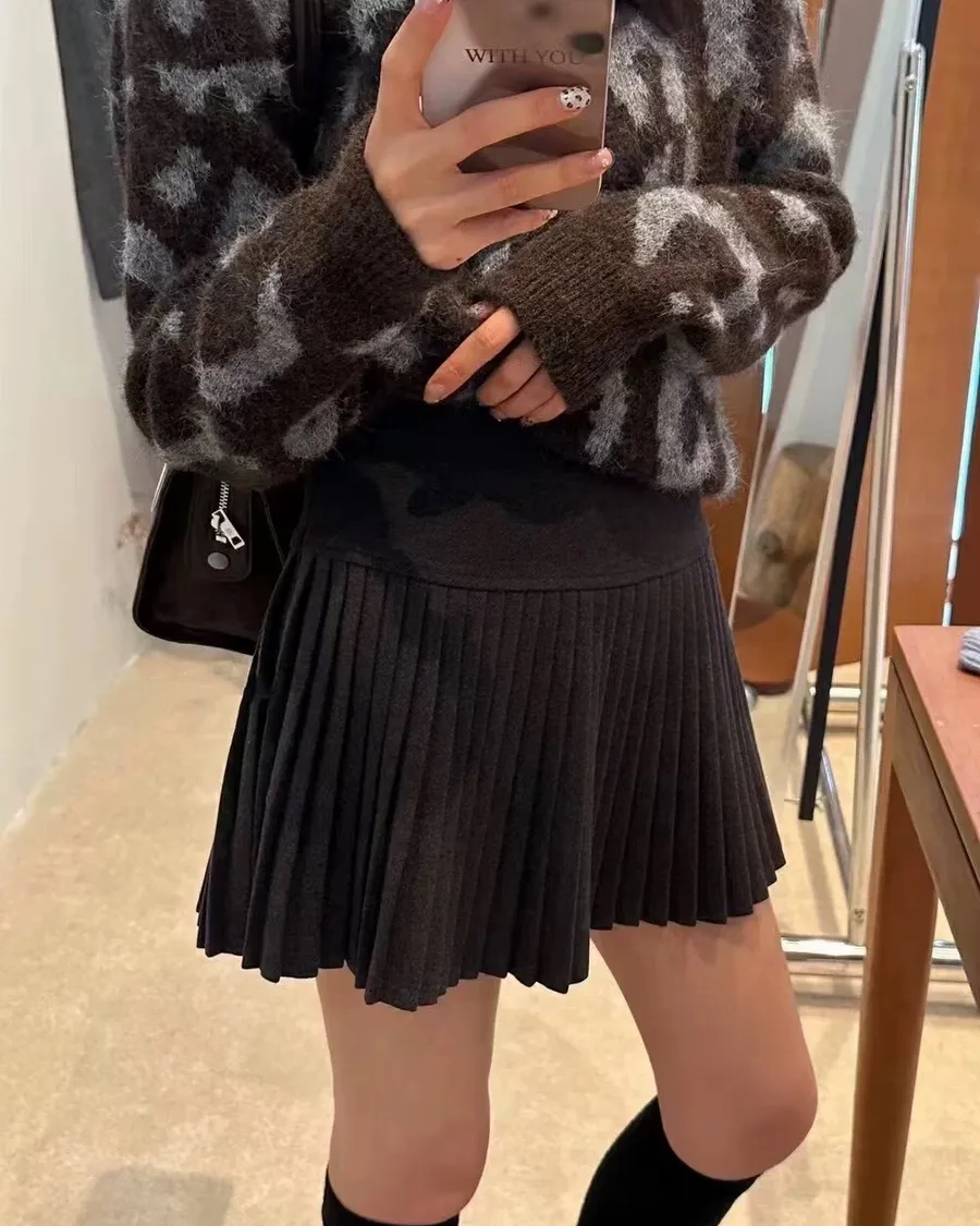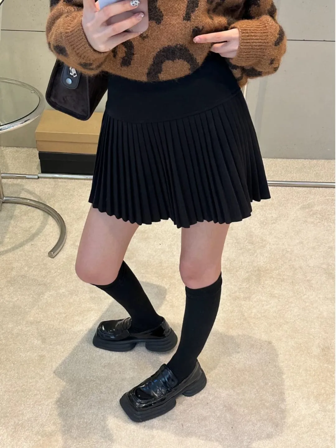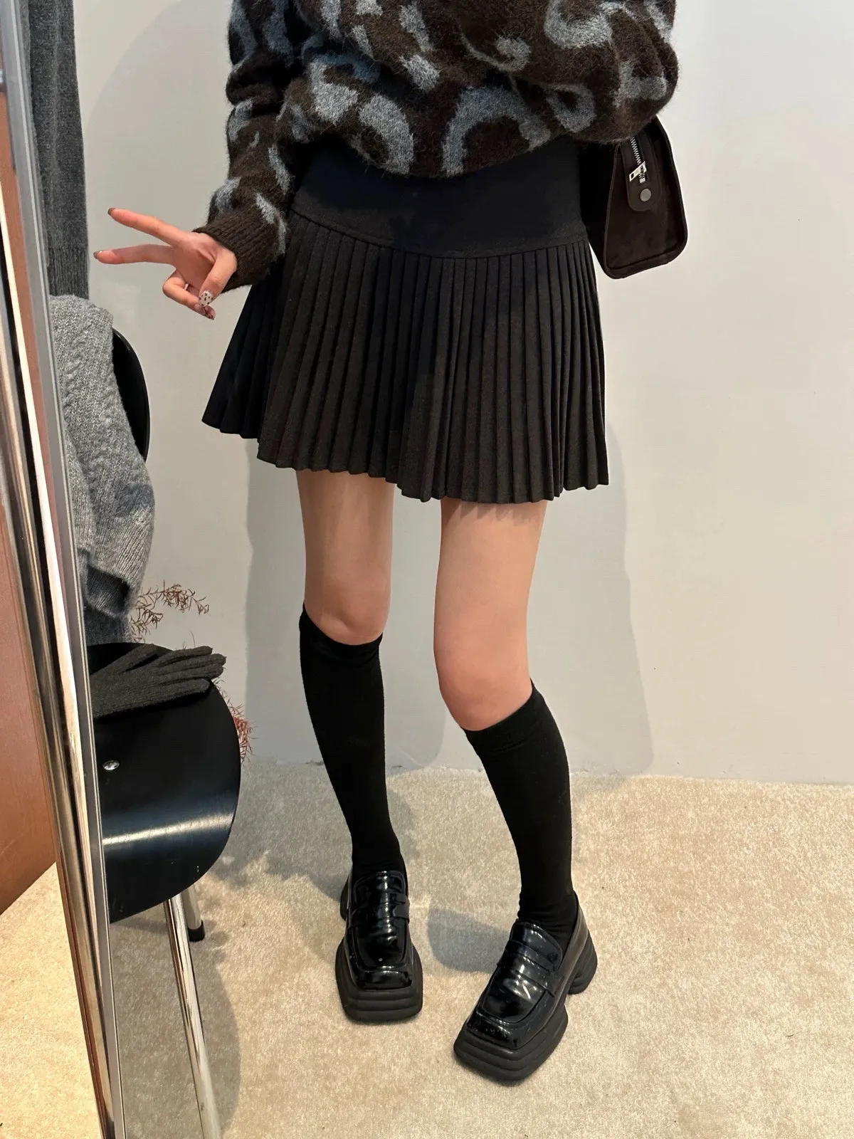 高腰顯瘦毛呢百摺褲裙 2色 SML