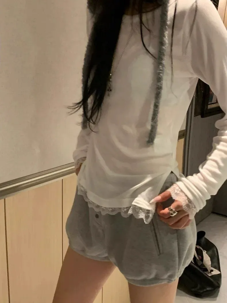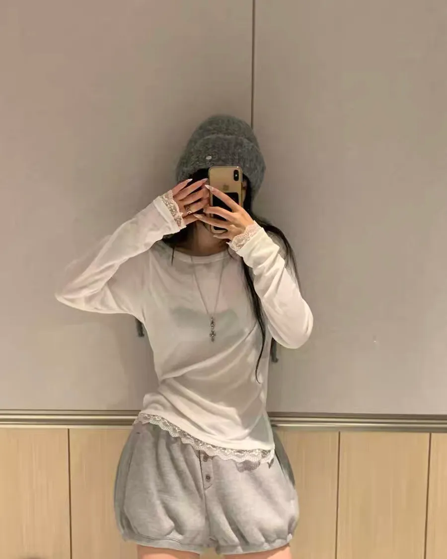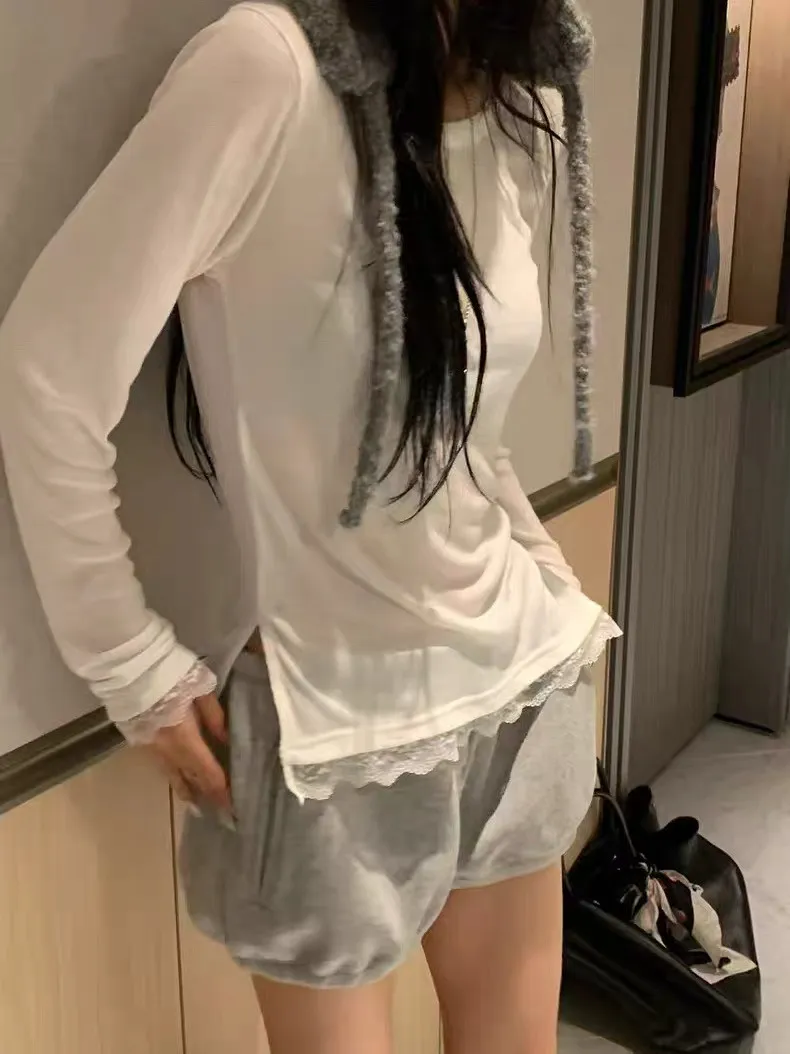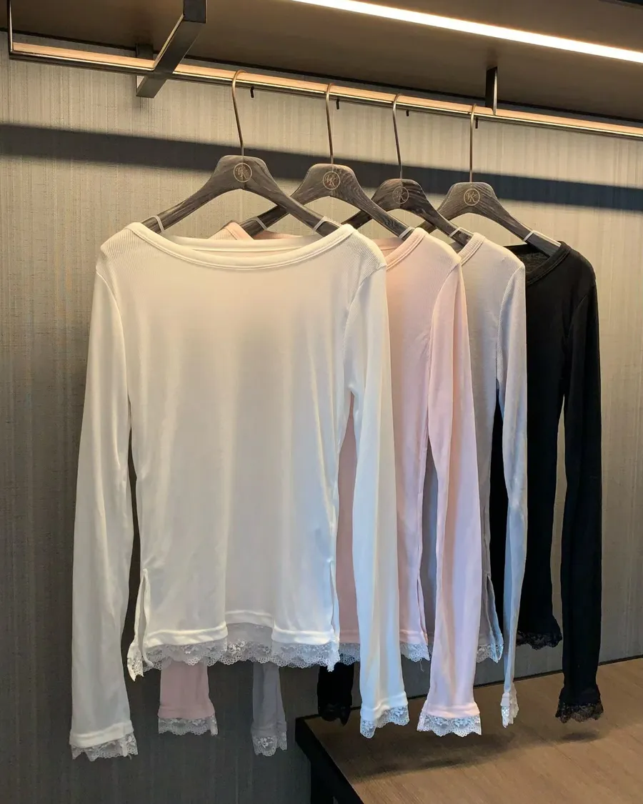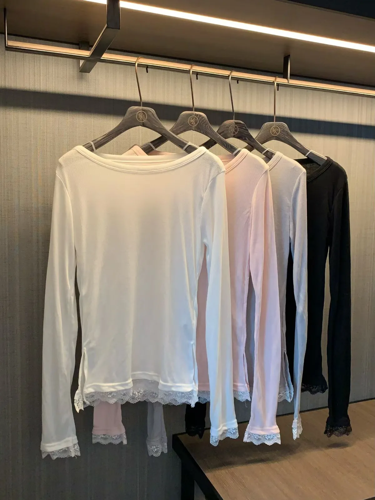 設計師檔口品牌 拼接蕾絲舒適打底開叉上衣