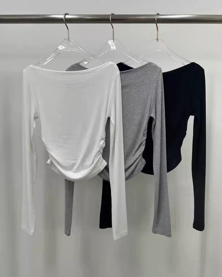 ㄧ字領皺摺收腰顯瘦上衣 三色